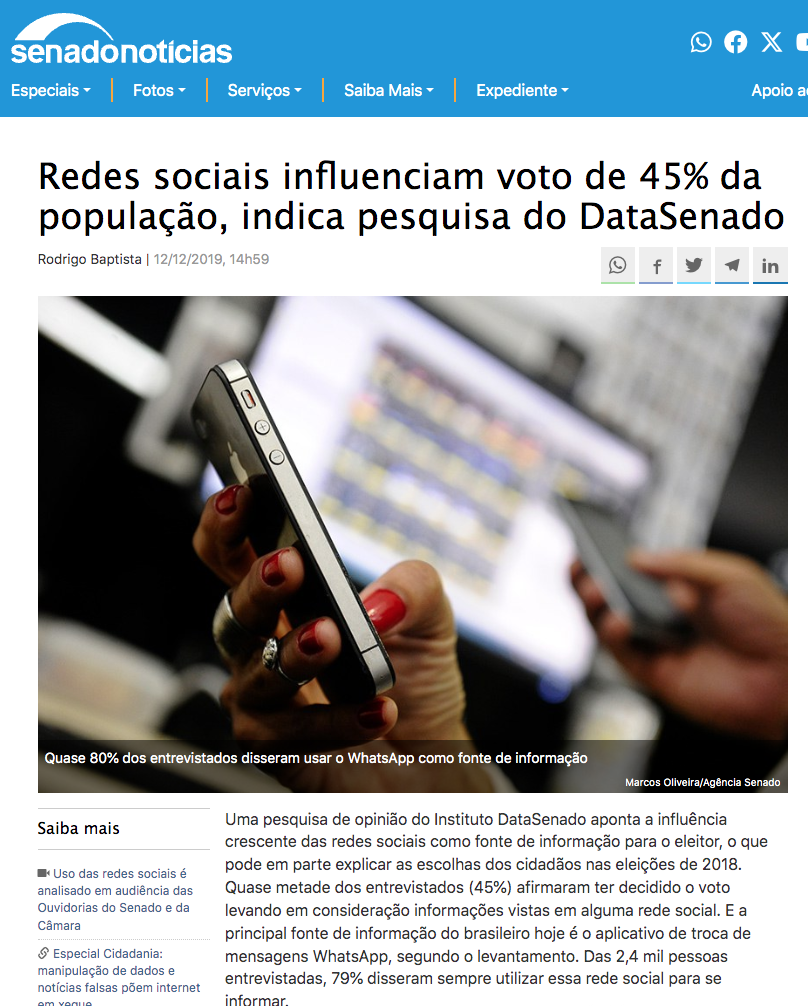 5 anos depois, em 2024, esse número pode chegar em 80% segundo o IPOL (Instituto de Ciência Política da Universidade de Brasília).